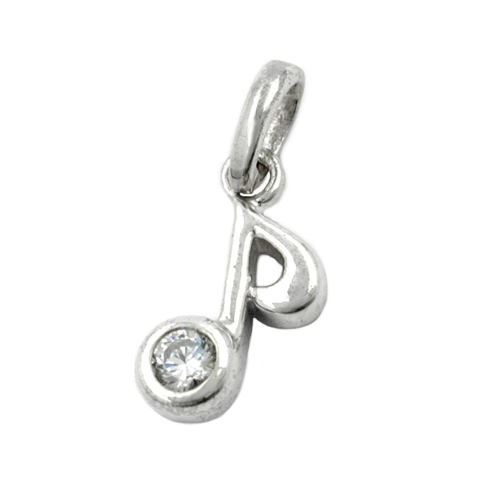 Pendant 11x5mm musical note eighth note with zirconia silver 925