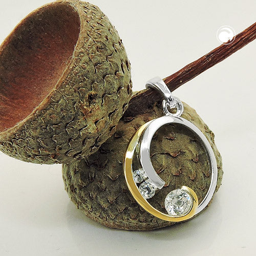 Pendant 12mm circle with spiral bicolor with zirconias silver 925