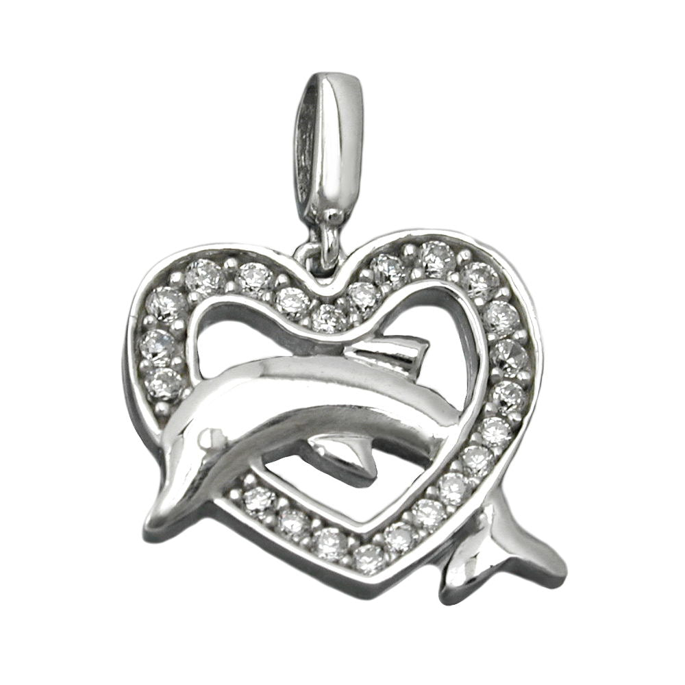 Pendant 14x15mm heart with dolphin rhodium-plated silver 925