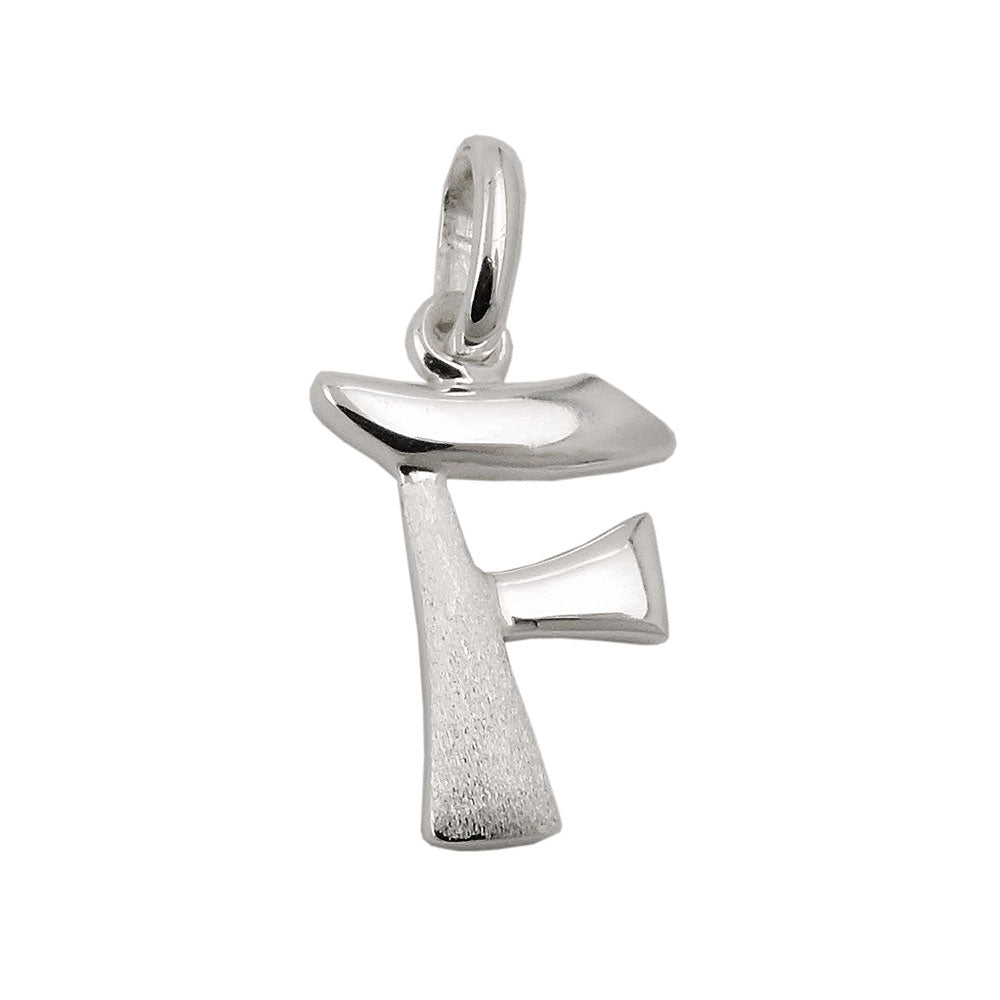 Pendant 15x11mm letter F partially matte shiny silver 925