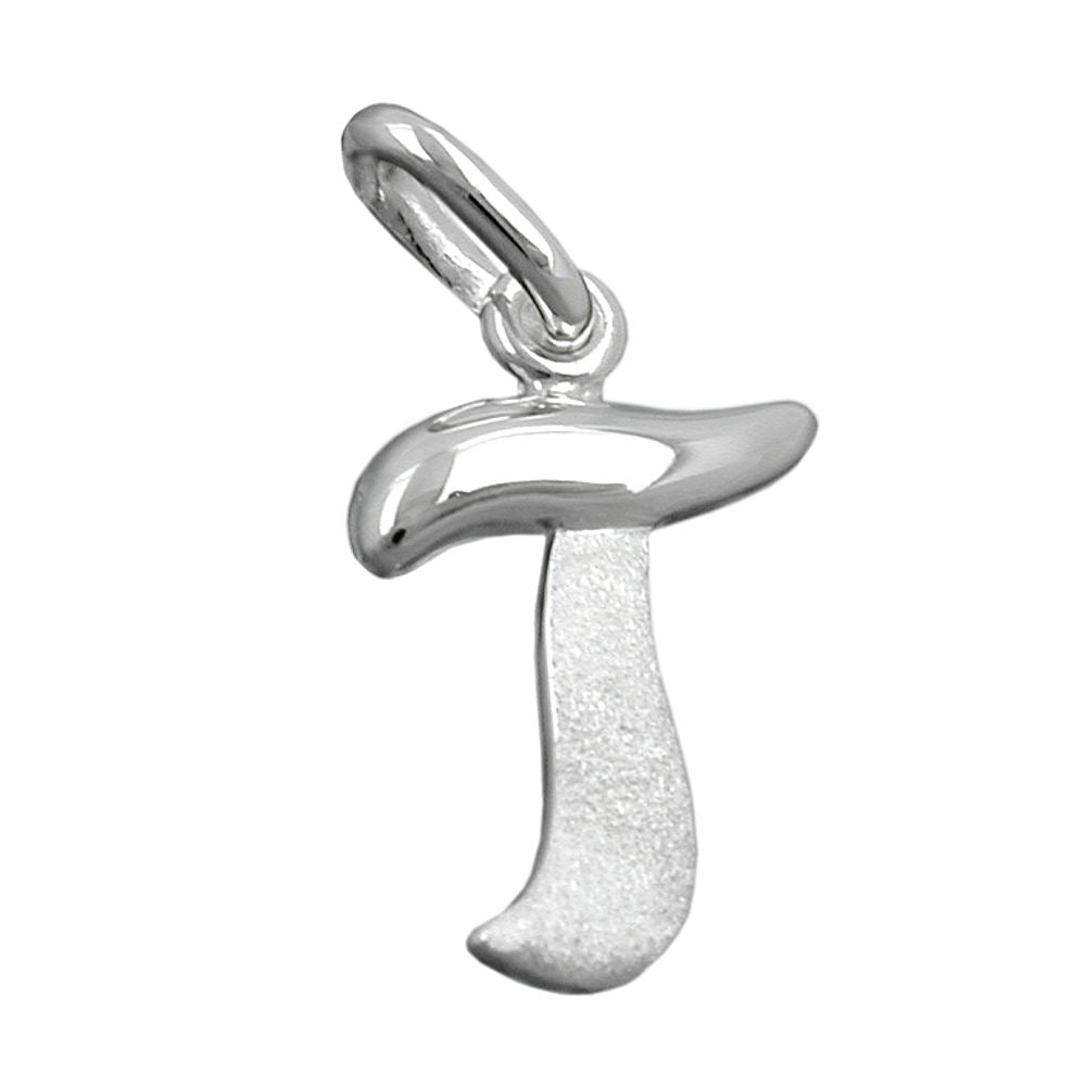 Pendant 15x11mm letter T partially matte shiny silver 925