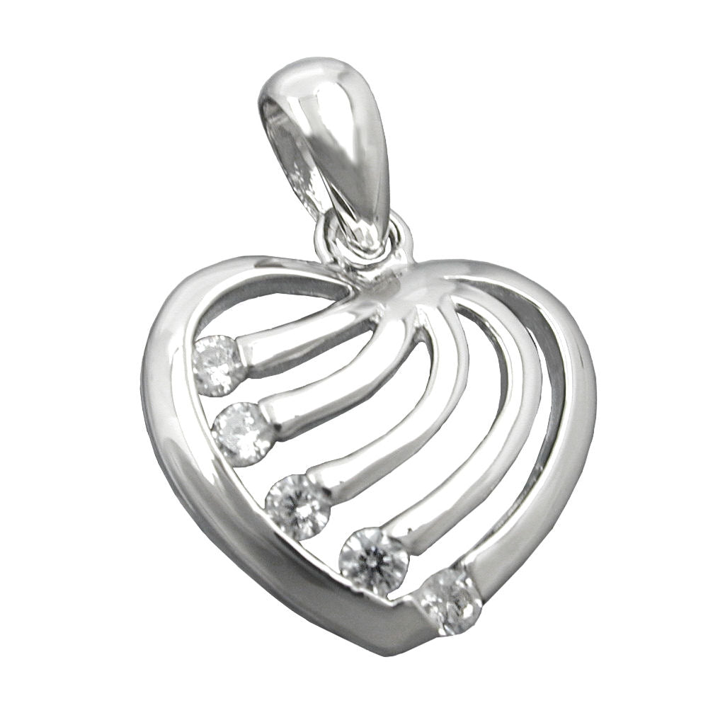Hearts are king! A beautiful heart pendant in 925 silver with a sweeping openwork pattern, crafted to the highest jeweler's standards. Each arch ends with a zirconia, while five zirconia stones stacked one above the other create a truly eye-catching look on this modern, updated heart pendant. To ensure long-lasting enjoyment, the surface has been rhodium-plated to protect against tarnish. A heart is the symbol of love—love that we want to receive, but also give. A beautiful piece of jewelry for romantic dreamers and lovers, the perfect gift for Valentine's Day or your wedding anniversary!