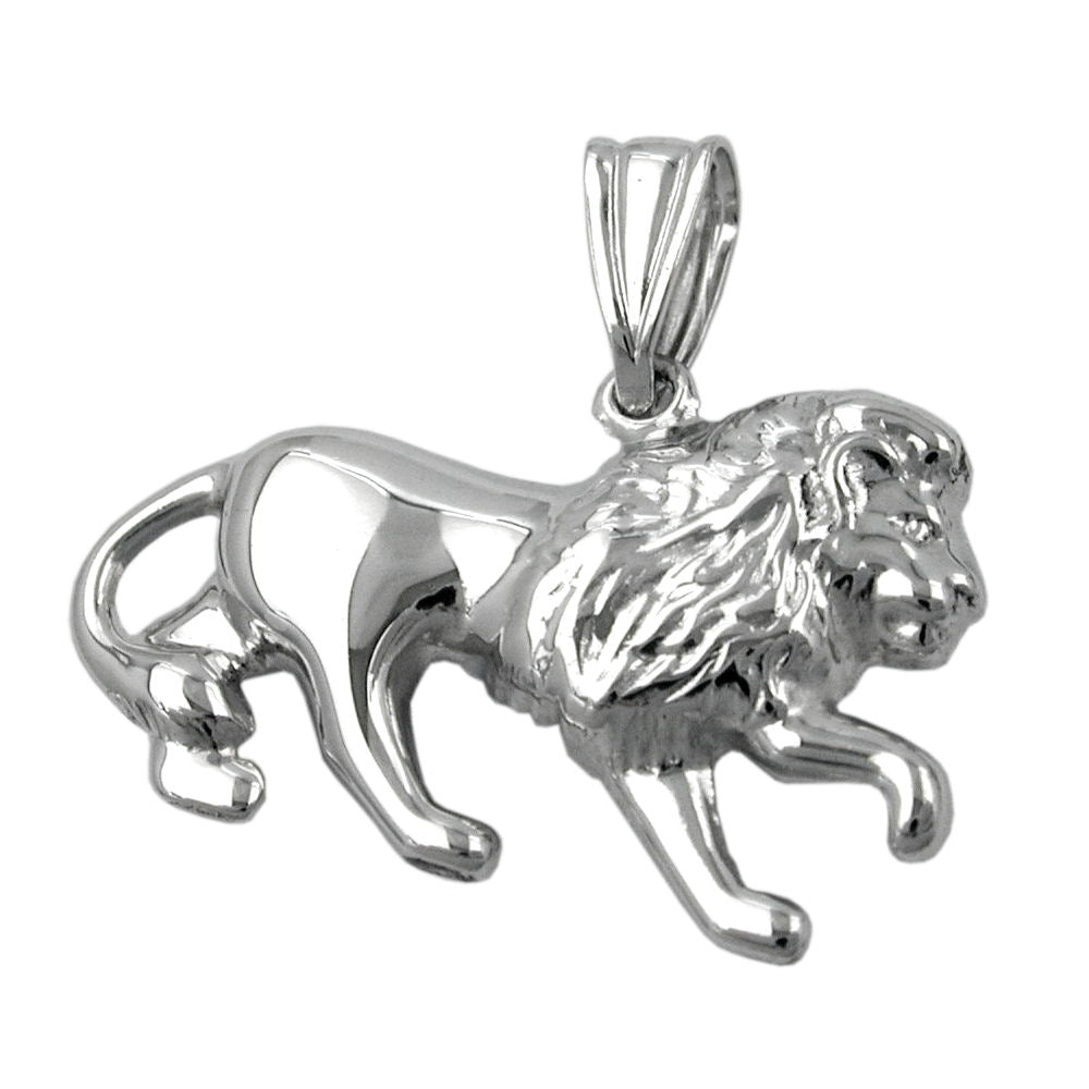 A beautiful, detailed lion pendant crafted in 925 sterling silver, polished to a high shine, and crafted to the highest jeweler's standards. The 15x23mm lion pendant is flat on both sides and hollow inside. To ensure long-lasting enjoyment, the surface has been rhodium-plated to protect against tarnish. This pendant is also a popular zodiac pendant for the sign of Leo. In the astrological horoscope, the powerful lion represents the birth date of July 23rd to August 23rd and also serves as a heraldic animal. A personalized gift for someone special, also a great choice for men's jewelry.