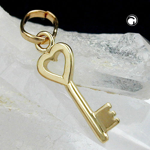 Pendant 15x5mm heart key shiny 9Kt GOLD