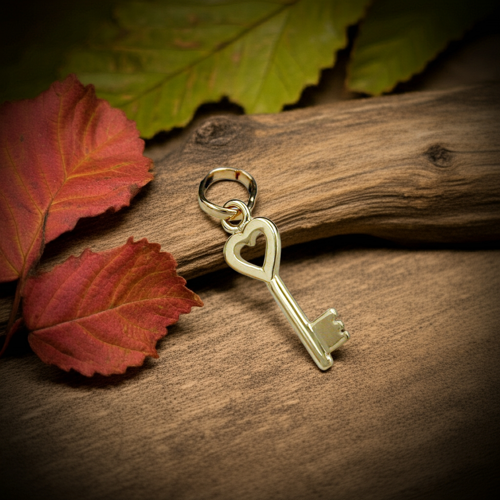 Is this the key to your heart? A beautiful 15x5mm key pendant with a heart-shaped handle made of 375 yellow gold (9 carat), crafted to the highest jeweler's standards. This lucky key symbolically opens the doors of life and hearts, allowing the recipient to find their place within them. The key is also considered an expression of the wearer's friendly openness.