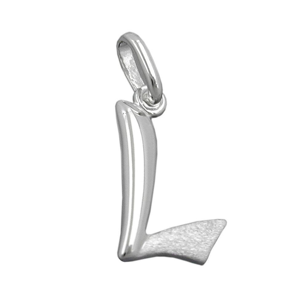 Pendant 15x9mm letter L partially matte shiny silver 925