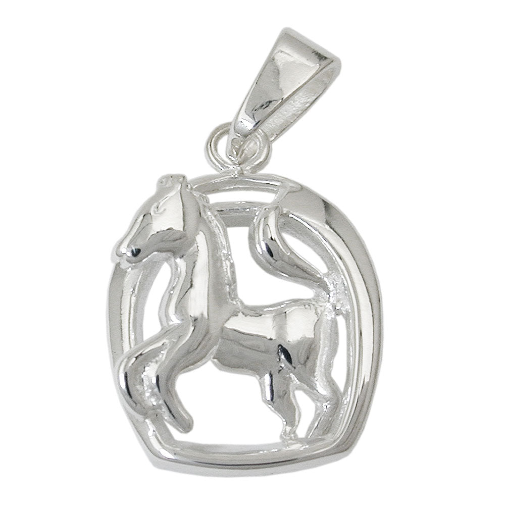 Pendant 16x12mm horse in horseshoe shiny silver 925