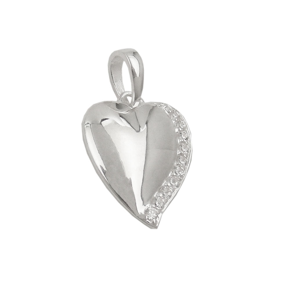 Pendant 16x14mm heart with zirconia shiny silver 925