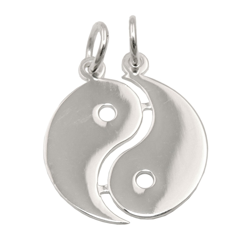 Beautiful 18mm large partner pendant, divisible friendship pendant with two eyelets, solid 925 sterling silver, highly polished, crafted in high-quality jeweler's quality. The two punched holes represent the white dot in the black yin half and the black dot in the white yang half. Yin and yang are polarities that mutually create and condition each other. Without yin, there is no yang, and vice versa. The round overall appearance signifies perfection and a life in harmony – respecting and eternally balancing/converging opposites. One pendant becomes two! Two halves become one again when the couple is together. The back offers space for a small engraving – for example, with the partner's name or an important date. A gift for friends and lovers!