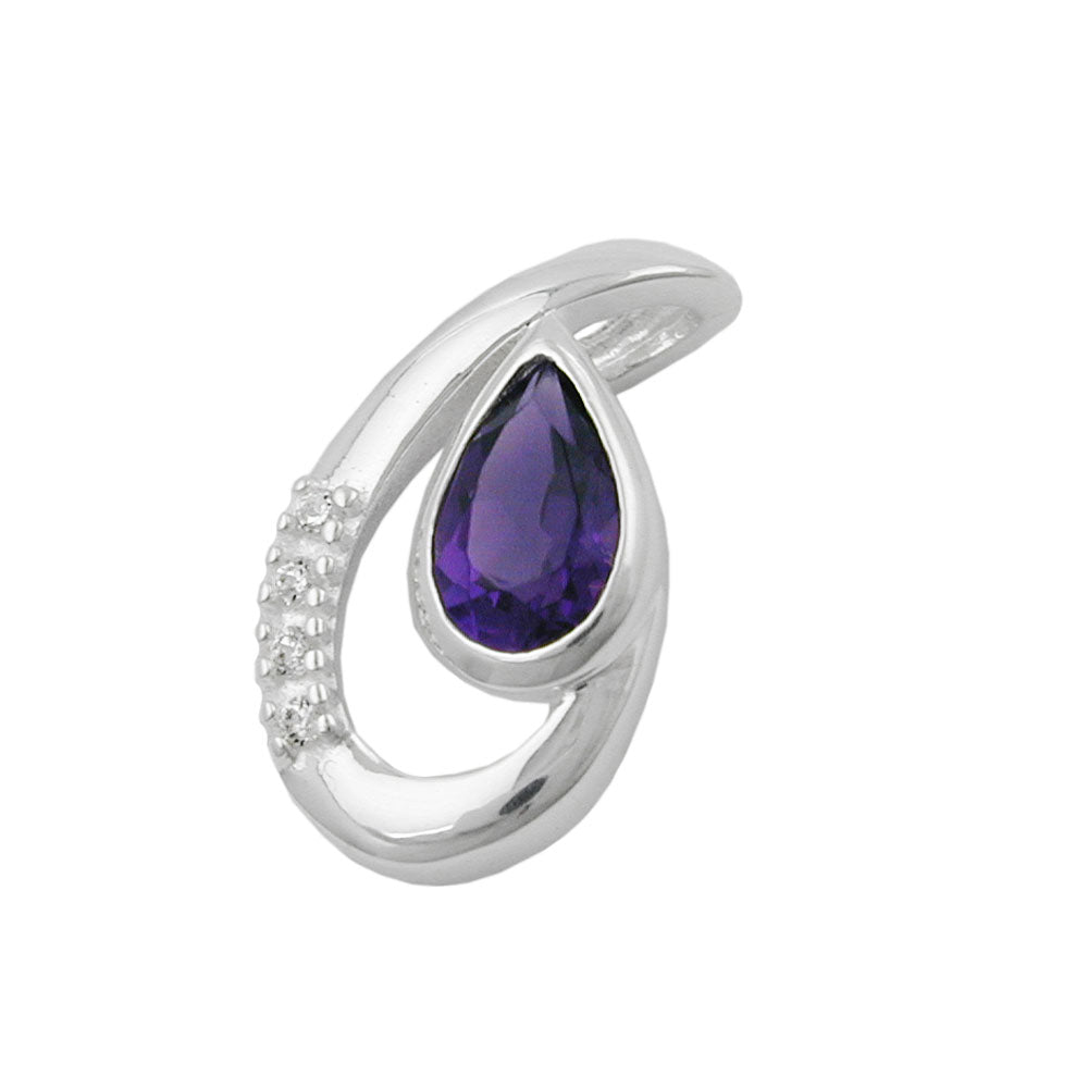 A beautiful 18x10mm oval pendant in 925 sterling silver, crafted to the highest jeweler's standards. The teardrop-shaped amethyst is accented on this elegant pendant with a gleaming silver arch, on which four small white zirconias sparkle in pavé settings. The chain in this continuous pendant runs through the upper part of the silver pendant, making the pendant appear to float on the chain. Colorful jewelry adds a touch of styling to your outfit. A timelessly beautiful piece for many occasions!