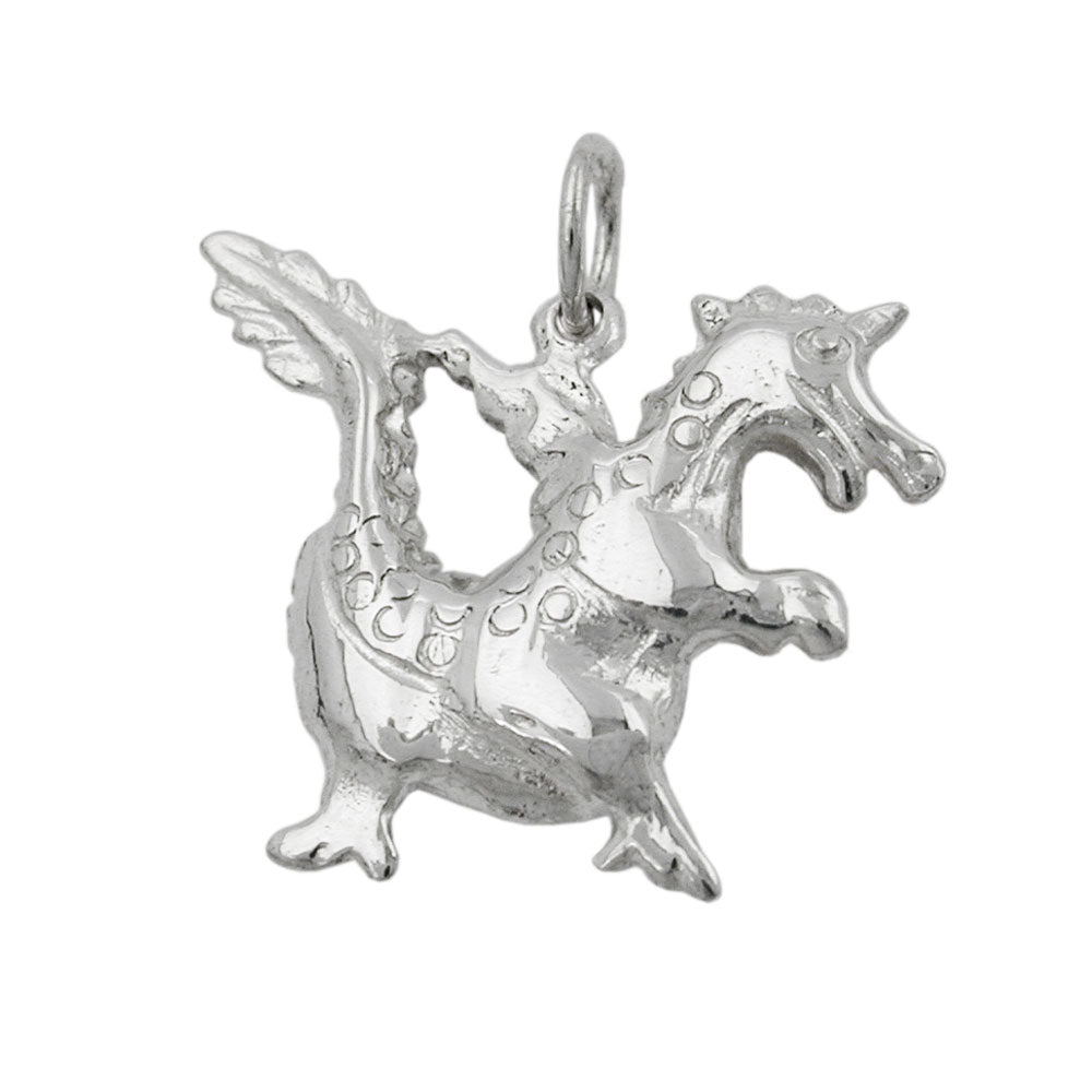 This cute 20x17mm dragon pendant made of 925 sterling silver won't hurt anyone! Flat and patterned on both sides, this mythical creature has a hollow head. Give this whimsical dragon to a little monster who will still give you lots of love and joy. The high-quality jeweler's craftsmanship ensures long-lasting enjoyment of this impressive piece of jewelry.