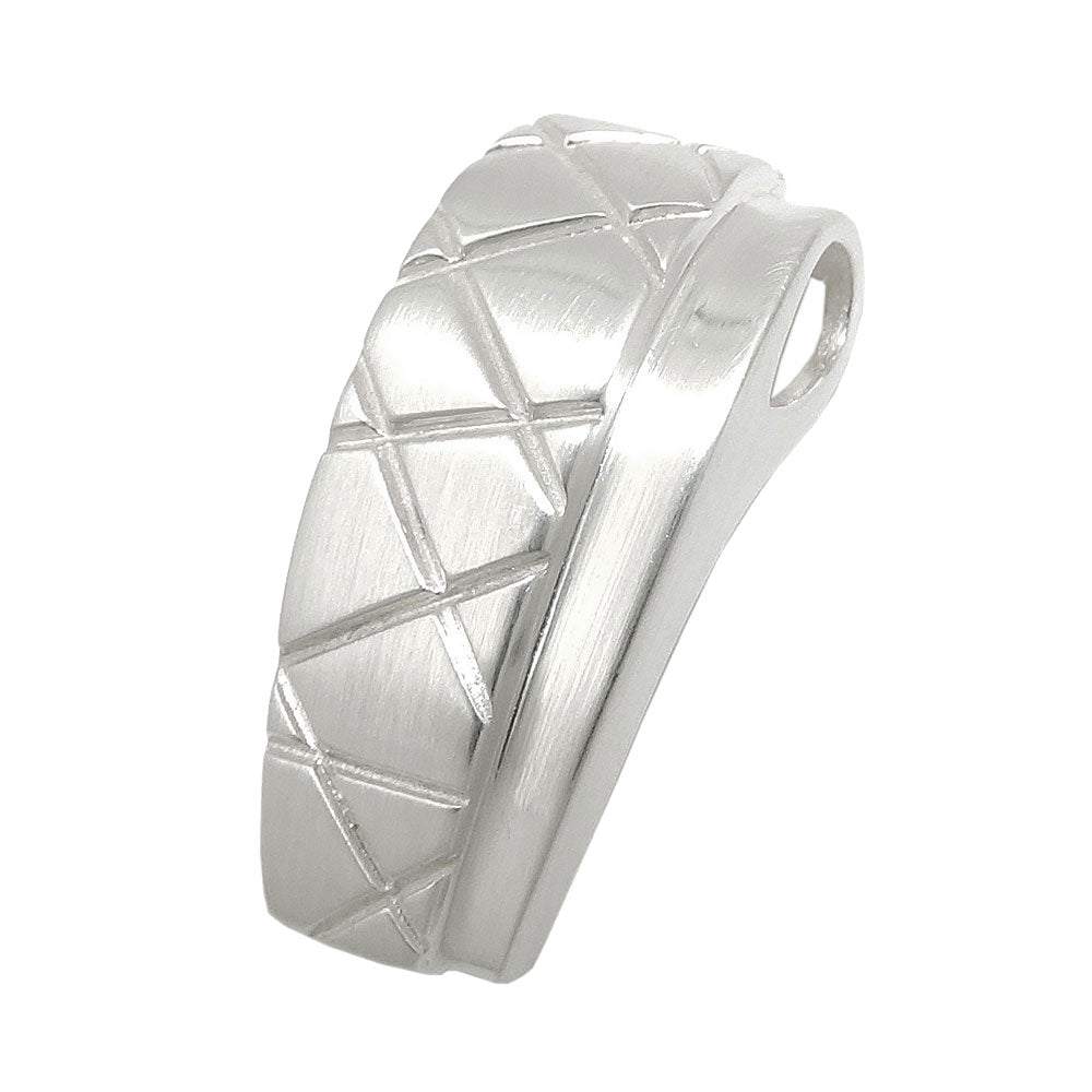 A timeless, 22x10mm pendant crafted from 925 sterling silver, crafted to the highest jeweler's standards. The slightly curved, downward-tapering pendant, featuring crisscross lines resembling a waffle pattern, is matte-finished, and the narrow, one-sided edge is polished to a high shine. This continuous pendant features two 3x5mm integrated eyelets on the back of the silver pendant, creating the illusion of floating on the chain. The perfect piece of jewelry for everyday wear.