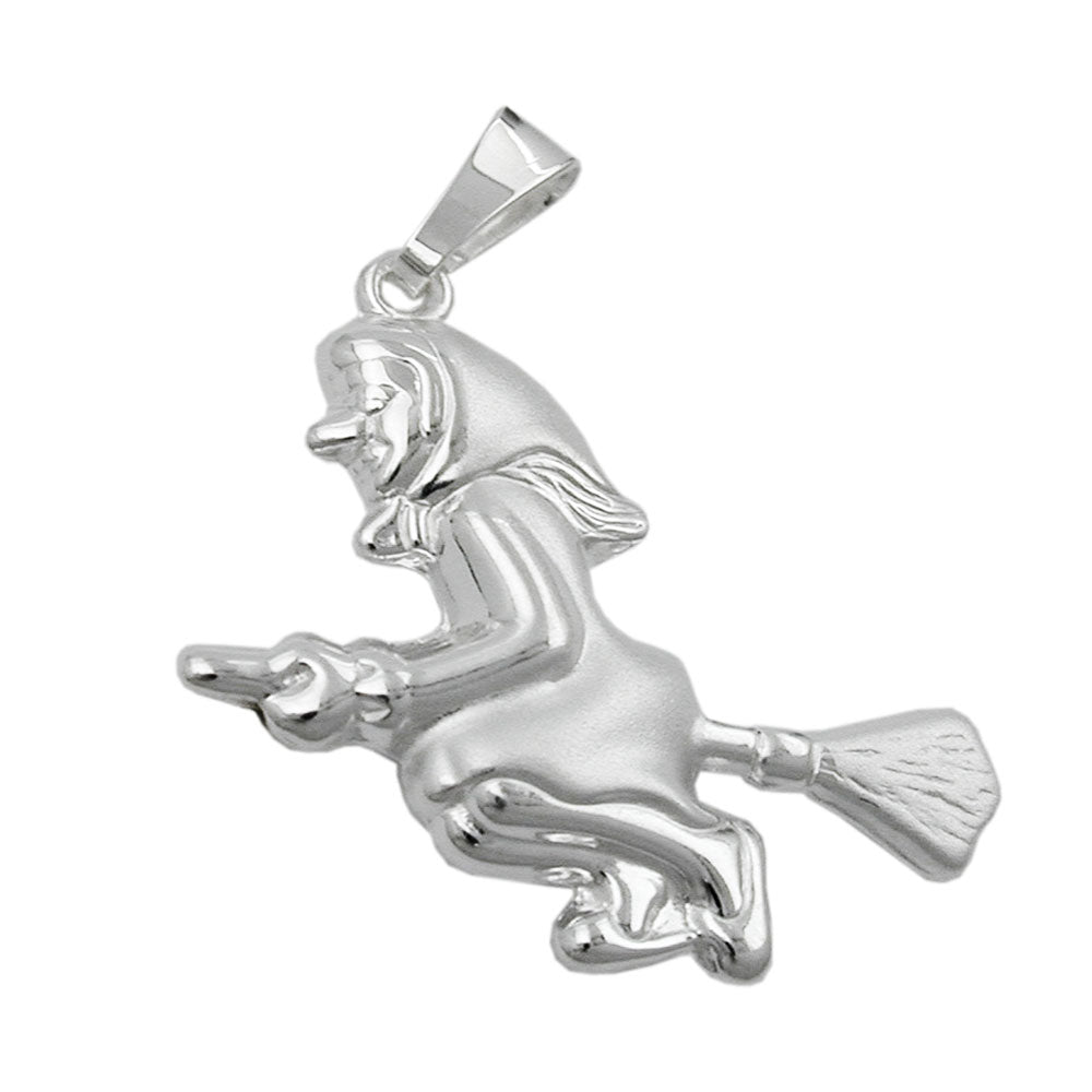 Who's afraid of flying witches? This enchanting little witch on a broomstick is crafted from 925 sterling silver, with high-quality jeweler's craftsmanship. The silver witch pendant features a trendy matte-gloss finish (headscarf and dress are matte), slightly shaped on both sides, and a hollow interior. Whether fairy tales or magic—everyone would love to make a wish, cast a spell, and do a little bit of magic at some point. The perfect piece of jewelry for witches of all ages, or those who aspire to be one.