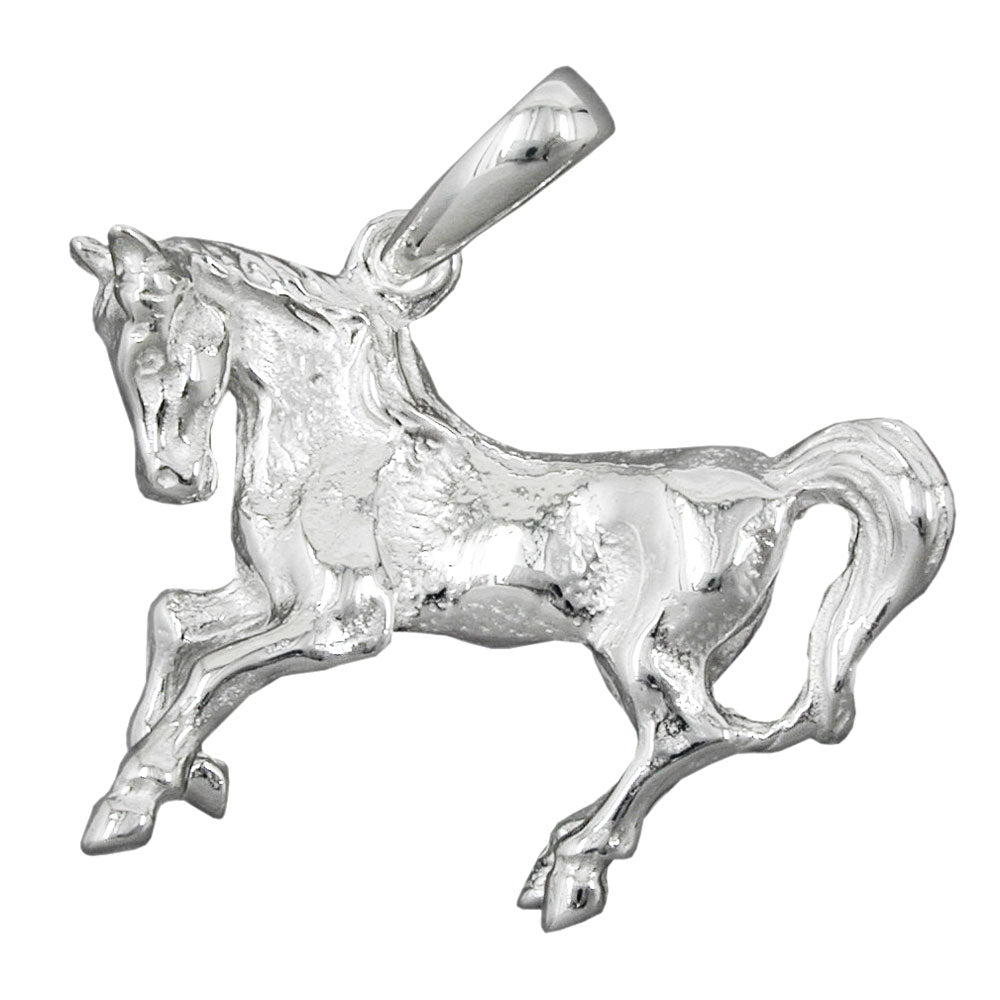 Happiness on earth lies on the back of a horse! This beautifully detailed, striking 32x25mm horse pendant, crafted from 925 sterling silver, is sculpted on both sides. It is solidly crafted in high-quality jeweler's quality and a true eye-catcher. Horses are admirably intelligent and powerful animals and have been important helpers to humans for thousands of years. Horse lovers appreciate their noble favorite animal when traveling long distances, carrying heavy loads, and through rugged terrain. This galloping horse is the ideal gift for horse lovers and horse lovers.