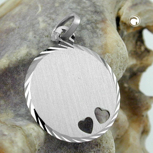 Pendant 16mm engraving plate round 2 hearts matt-diamond-plated rhodium-plated silver 925
