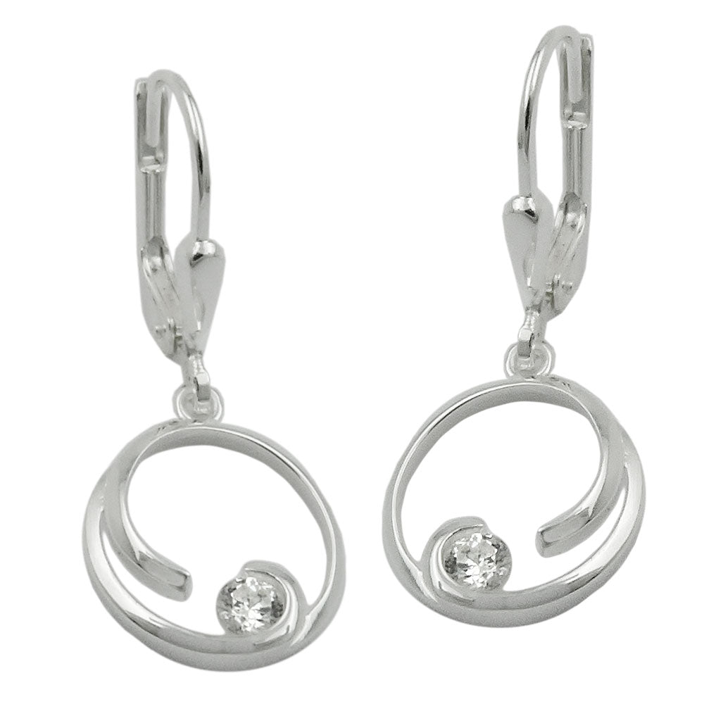 Leverback earring 28x11mm circle with spiral zirconia silver 925
