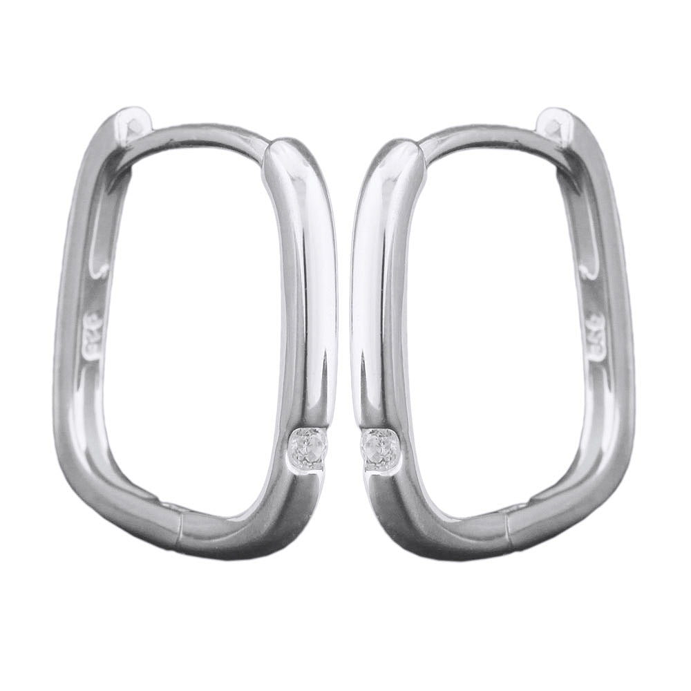 Fashionable square hinged hoop earring in 925 sterling silver with a small sparkling rhinestone! The square hoop earring with a hinged clasp measures 15.5mm in diameter, is 1.8mm thick, solid, and highly polished, and features a charming little extra: a sparkling white zirconia at the bottom. The high-quality jeweler's quality ensures long-lasting enjoyment of this everyday hinged hoop earring with its straight edges.