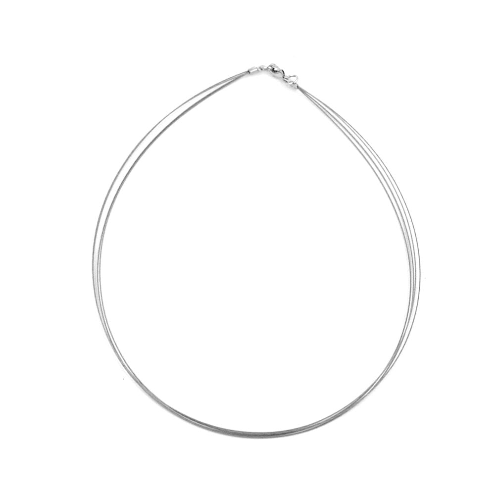 A popular accessory for jewelry pendants – plastic-coated, four-strand stainless steel wire with a silver-colored lobster clasp. The 40cm short steel wire chain is visually striking for high-quality fashion jewelry pendants. Pendants/beads must have a slightly larger eyelet or hole so they can be pulled over the end of the wire chain. The soft and supple wire sits comfortably around the neck and should be carefully removed at bedtime and during storage to avoid kinks.