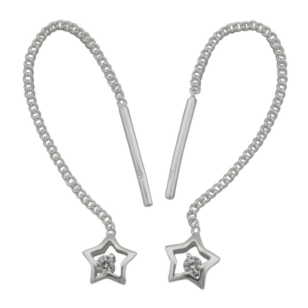 Shine, my star, shine! A star shines even in the darkness and embodies glitter and shine, not just in the sky. The popular star motif is crafted in high-quality jeweler-quality 925 sterling silver with these 57x5mm pull-through earrings. A 5mm open five-pointed star hangs from a 1mm thin curb chain. As the icing on the cake, a small sparkling white zirconia sparkles in the lower corner on each side. The earrings are designed in pairs, facing each other. The total length of the threader earring is approximately 57mm. Like a thread, the pull-through dangles long behind the ear, perfectly highlighting the decorative star. These cute earrings sit comfortably on the neck and are suitable for more than just children's and teenagers' jewelry.