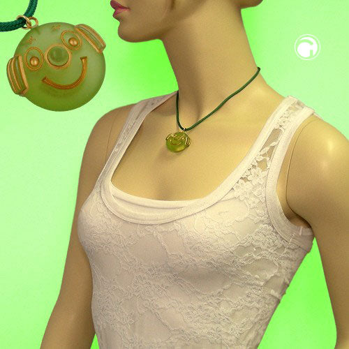 Ein Symbol für Freude, Farbe und Unbeschwertheit – Kette „Clownsgesicht hellgrün-matt“ von Vanis Glanzwelt.