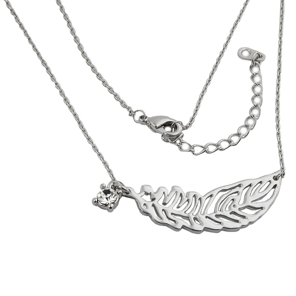 Kette 34x11mm Metallanhänger Feder Ankerkette rhodiumfarbig 42cm
