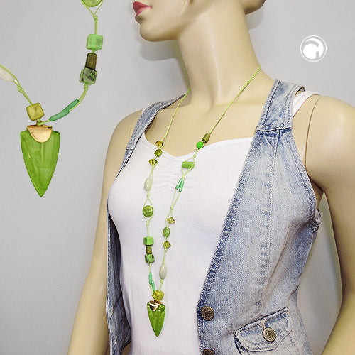 Kette 44x28mm Dreieck mit Schluppe hellgrün Kordel lindgrün 80cm