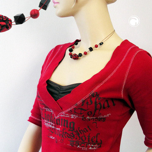 Kette Drahtkette Kieselstein rot-schwarz Kunststoffperlen 45cm