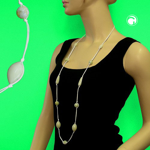 Kette Kunststoffperlen mint-grün-marmoriert Kordel weiß 110cm