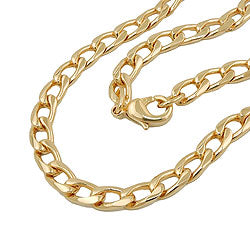 This highly decorative, flat, wide curb chain, measuring 5x2mm, with high-quality, jeweler-quality double gold plating, is not only suitable for men's jewelry. With its wide, open, and rounded chain links, this jewelry chain can also be worn by women. The base material is a tombac (brass) alloy. The wide curb chain pattern is one of the classic chain patterns. The excellent gold plating guarantees long-lasting durability and enjoyment with this beautiful necklace.