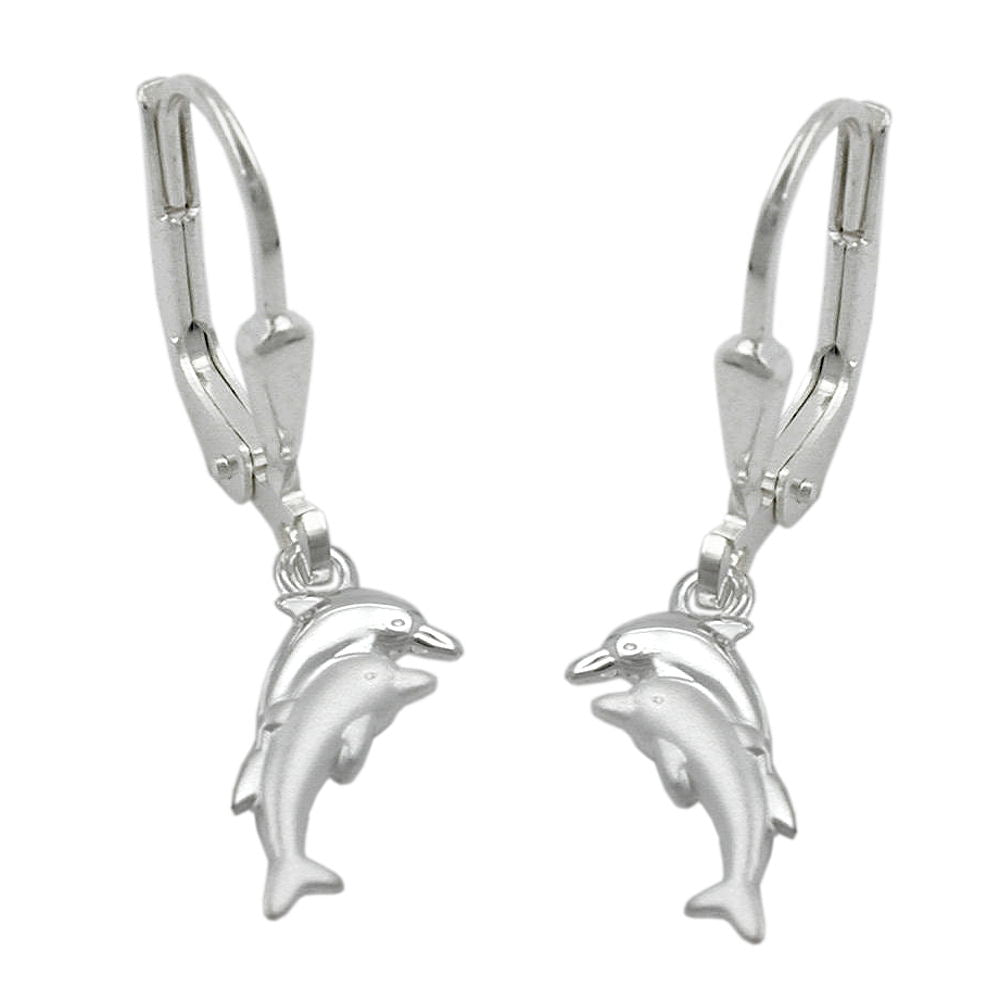 Ear leverback earrings earrings 25x11mm dolphin pair matt-shiny silver 925