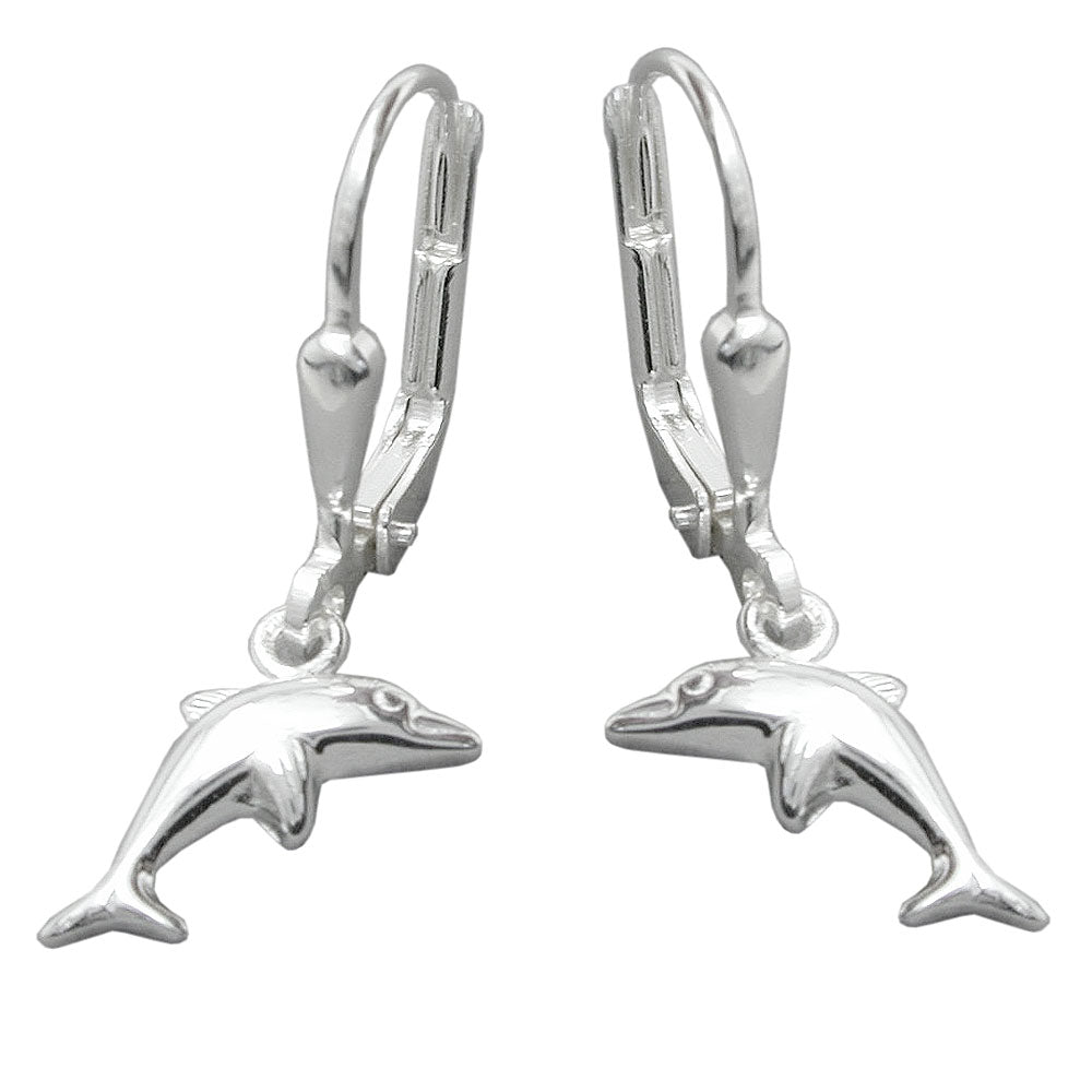 This beautiful dolphin earring isn't just for little girls! A tiny, gleaming, leaping dolphin frolics on the animal-motif earwire in 925 sterling silver. This dolphin jewelry can also be worn as an expression of one's own attitude to life. The dolphin embodies intelligence, strength, endurance, dexterity, sociability, and joie de vivre and is considered a friend to mankind. Leverback earrings are particularly suitable for children's jewelry. The earwire with a hinged hoop stays securely in the ear and prevents it from pricking the neck.