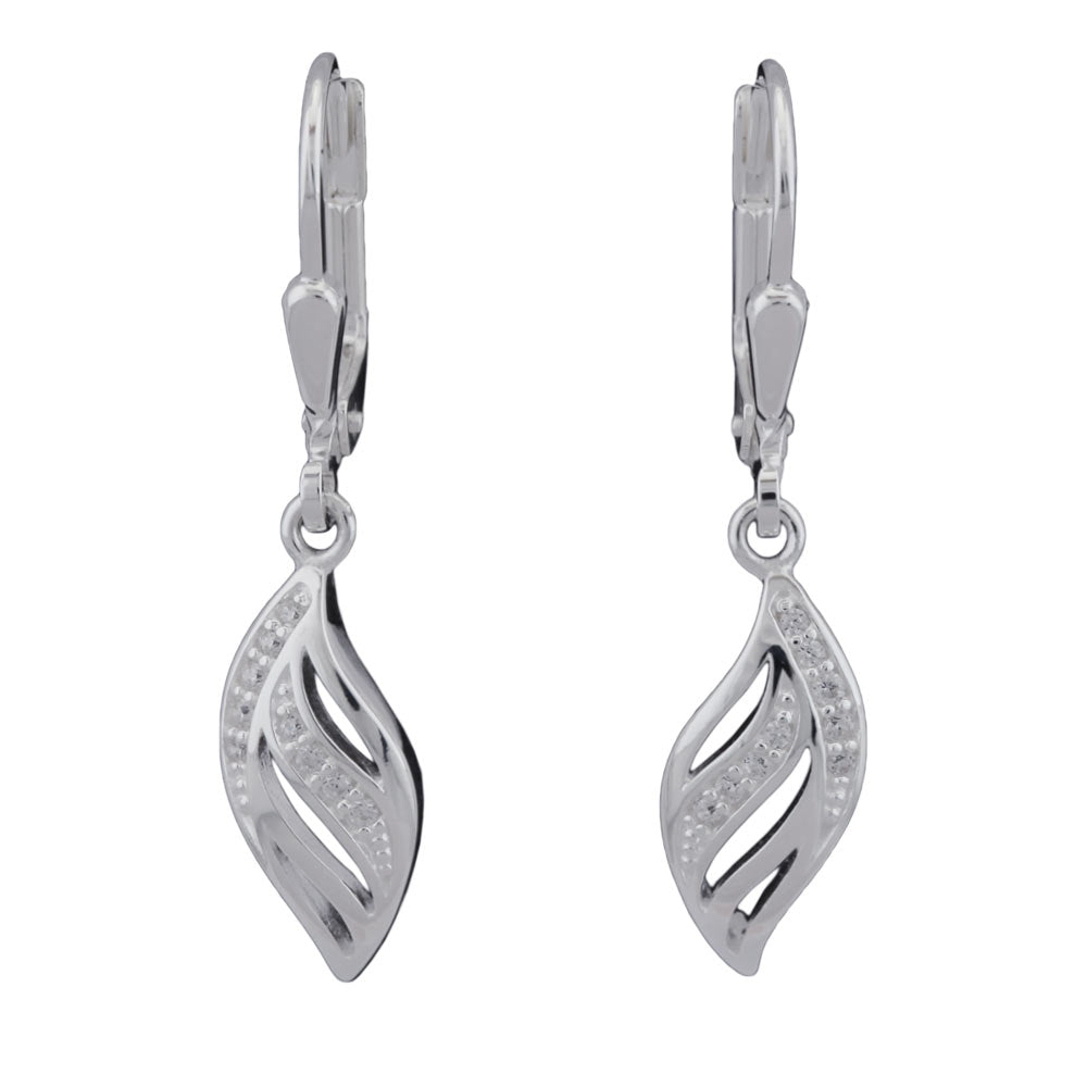 Ear leverback earrings 30x6mm leaf shape with zirconias silver 925