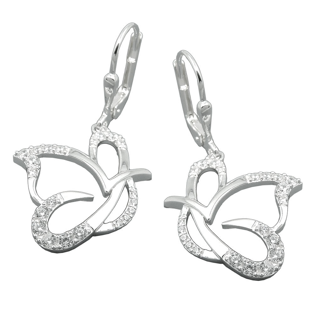 Ear leverback earrings earrings 35x18mm stylized butterfly with zirconias silver 925