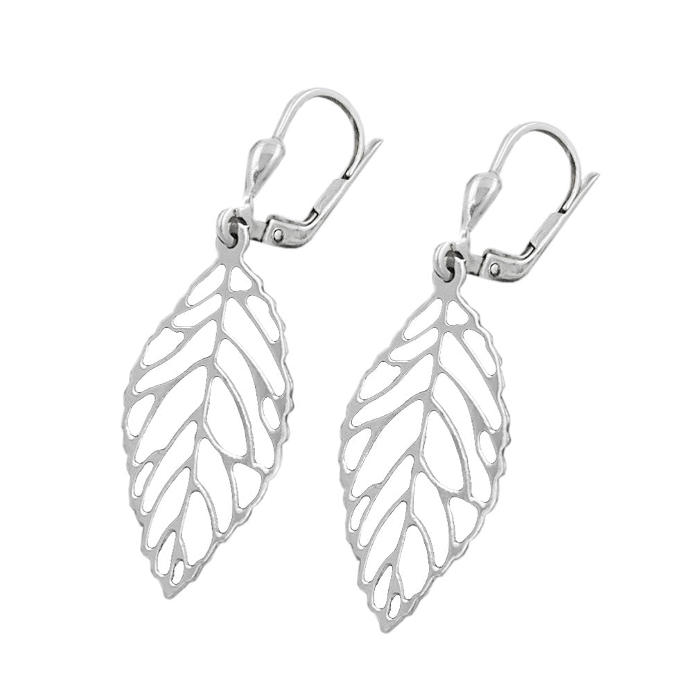 Ear leverback earrings earrings 42x14mm openwork leaf silver 925