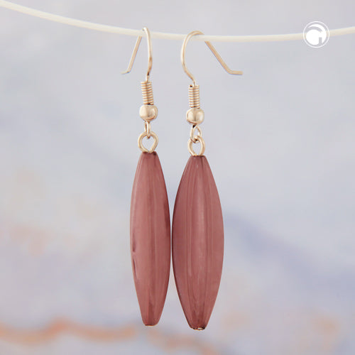 Ear hooks earrings earrings 30x9mm grooved olive plastic purple-marbled