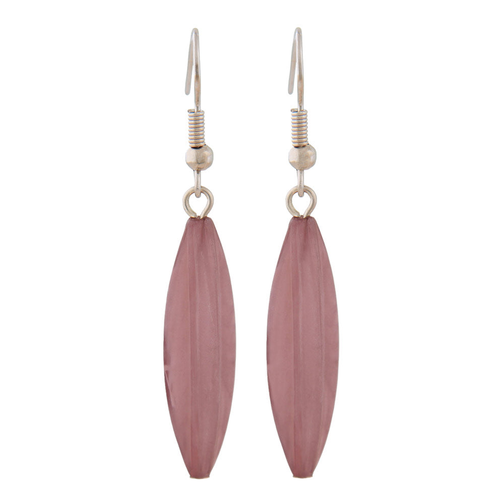 These feather-light costume jewelry earrings add the perfect finishing touch to your outfit's colors. The 50mm long earring consists of a single 30x9mm, purple-and-white marbled plastic olive and a silver-colored brass (white bronze) ear hook. Colorful jewelry accentuates the colors of your outfit or adds a touch of sparkle, perfectly rounding off your look. Sold only in pairs.
