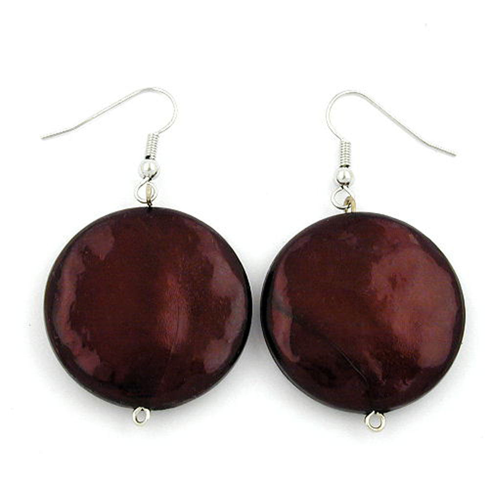 Ear hook earring 28mm disc coffee brown-glossy plastic