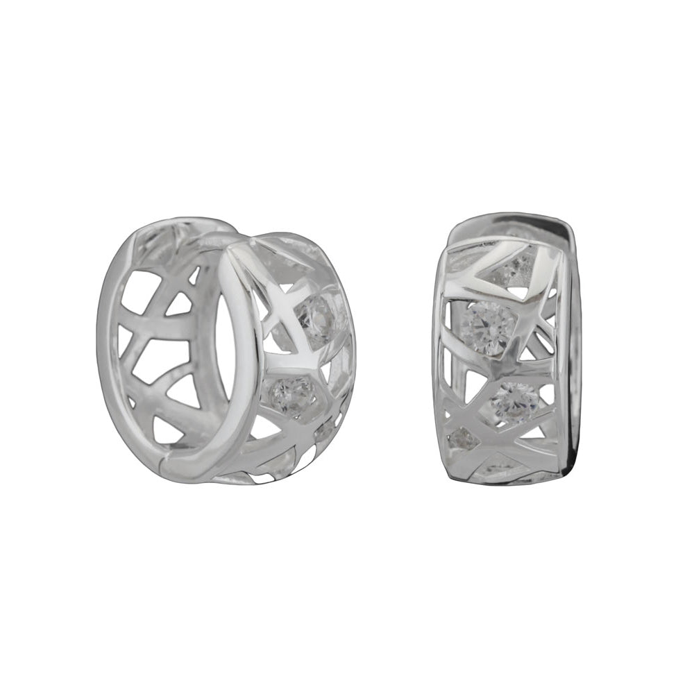 Earring Hoop 18x7mm hinged grid with zirconias shiny silver 925