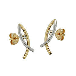 Beautiful, religious ear studs made of 375 yellow gold (9 carat) with zirconia, crafted to the highest jeweler's standards. A white zirconia stone sparkles in a prong setting at the center. The Ichthys sign, also known as the Jesus fish, is worn as a declaration of Christian faith. In the early days of Christianity, the fish symbol was a secret symbol for Christian believers. These fish earrings with a high-gloss finish make a particularly beautiful confirmation gift.