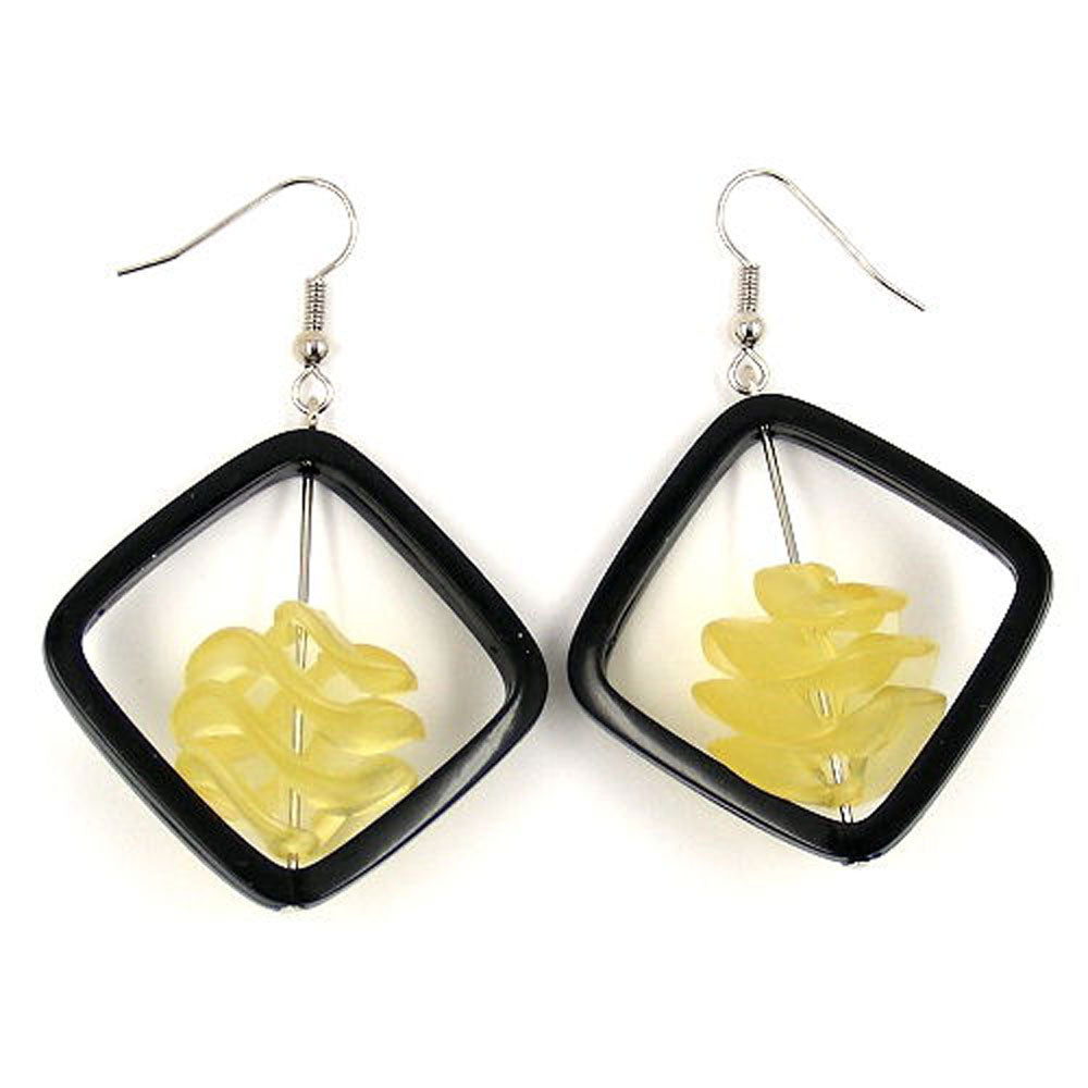 Ohrhaken Ohrhänger Ohrringe 58x39mm Viereckrahmen schwarz mit Spiralperle gelb-transparent Kunststoff